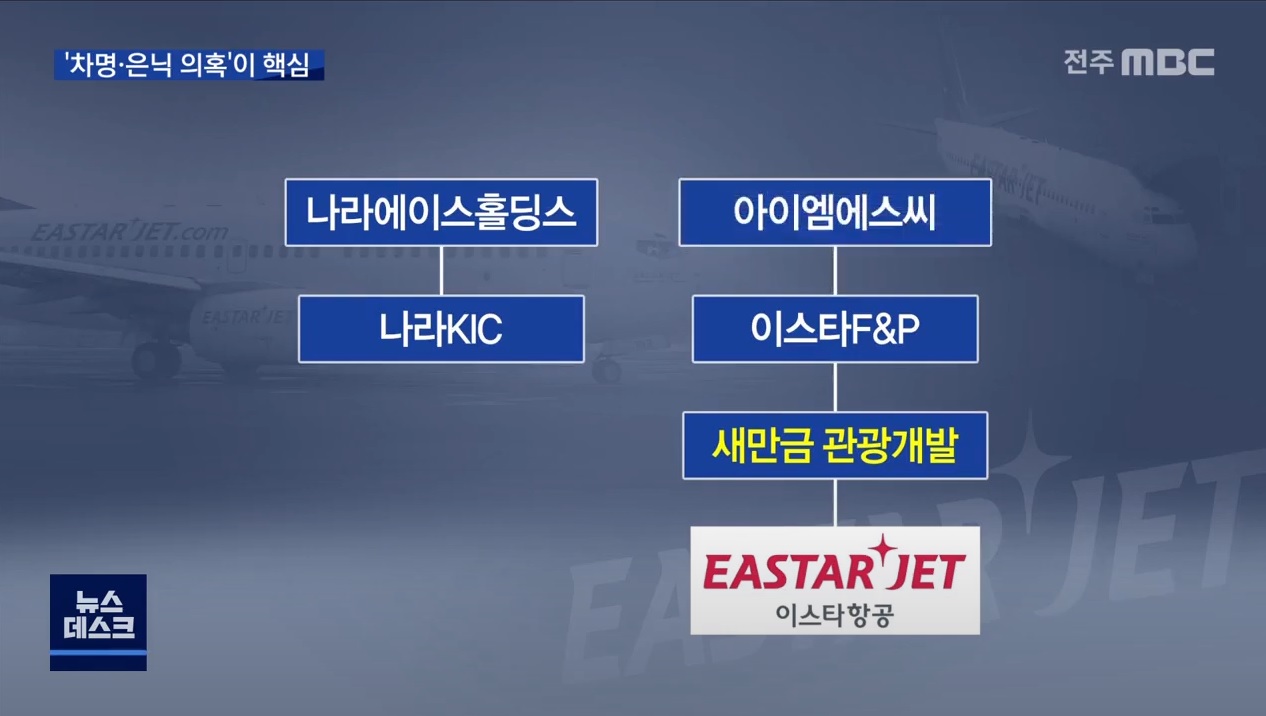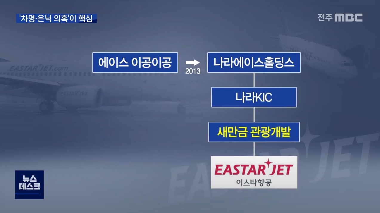 새 주인인 나라에이스홀딩스는 이듬해 KIC가 가진 새만금관광개발 지분을 이스타에프엔피에 넘기고, 다시 이상직 의원의 또 다른 페이퍼컴퍼니가 사들이는 등의 과정을 거쳤는데, 전주MBC는 이를 지배구조를 복잡하게 만들며 이스타항공과 KIC의 분리 작업을 한 것이라고 분석했습니다. 그리고 2015년 이스타홀딩스가 등장해 새만금관광개발이 가지고 있던 이스타항공 지분 49.4%가 모두 이상직 의원의 자녀들에게 갔습니다. 기자는 이 과정에서 차명이나 은닉재산 의혹과의 연관성을 밝히는 것이 이스타항공 사태의 핵심 쟁점이 될 것이라고 전망했습니다.