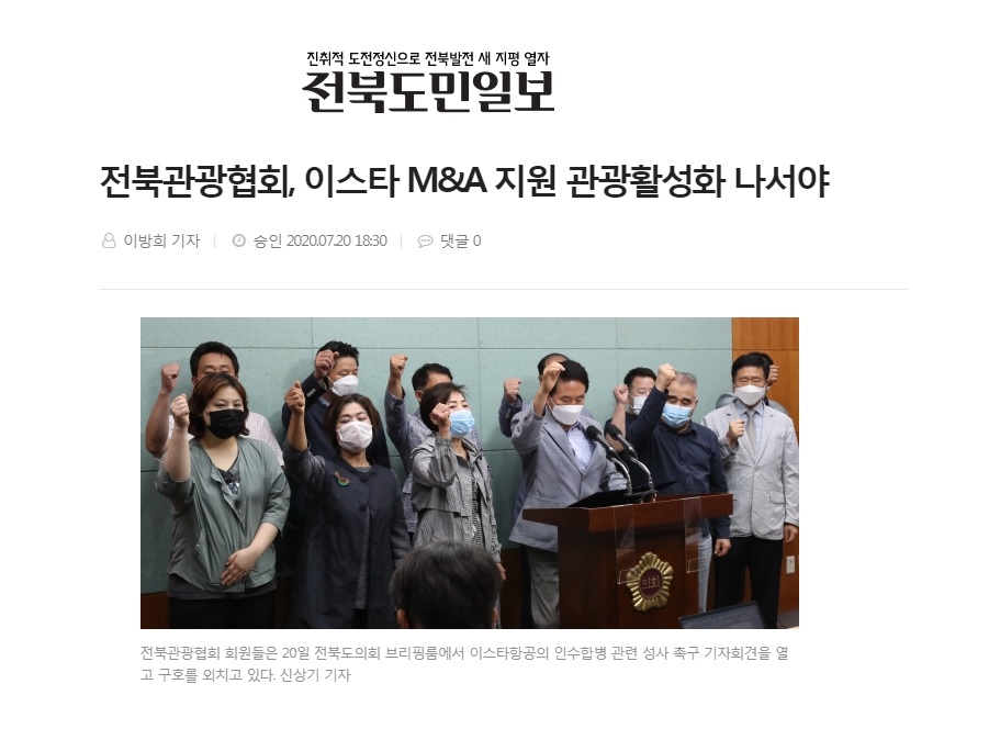 [전라일보] 전북관광협회, 이스타항공 합병 관련 기자회견(2면, 박상후)