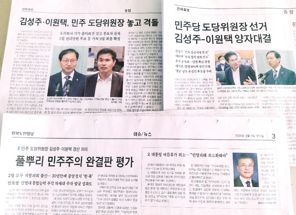 전북도민일보는 이번 도당위원장 경선이 ‘풀뿌리 민주주의의 완결판’이라고 보도했습니다.