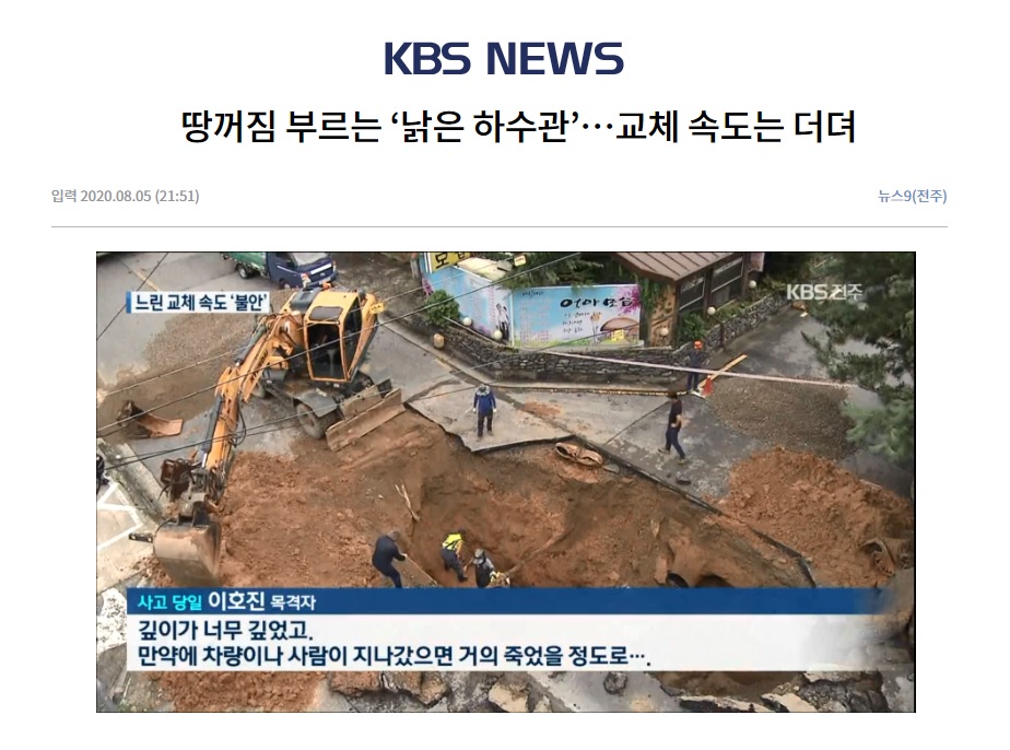 [KBS전주총국] 땅꺼짐 부르는 '낡은 하수관'… 교체 속도는 더뎌(8/5, 서윤덕)