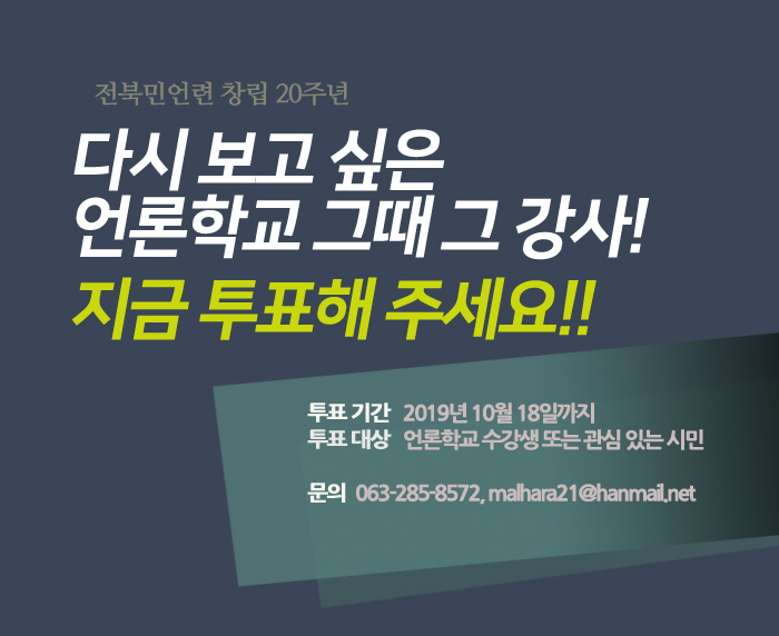 전주시민회 시절 언론분과에서 시작된 <언론학교>는 ‘참 언론 실천의 한마당’이라는 시대적 요구를 담고 매년 언론계의 현안과 대안을 찾는 강의 일정으로 매년 시민들을 찾아갔습니다.