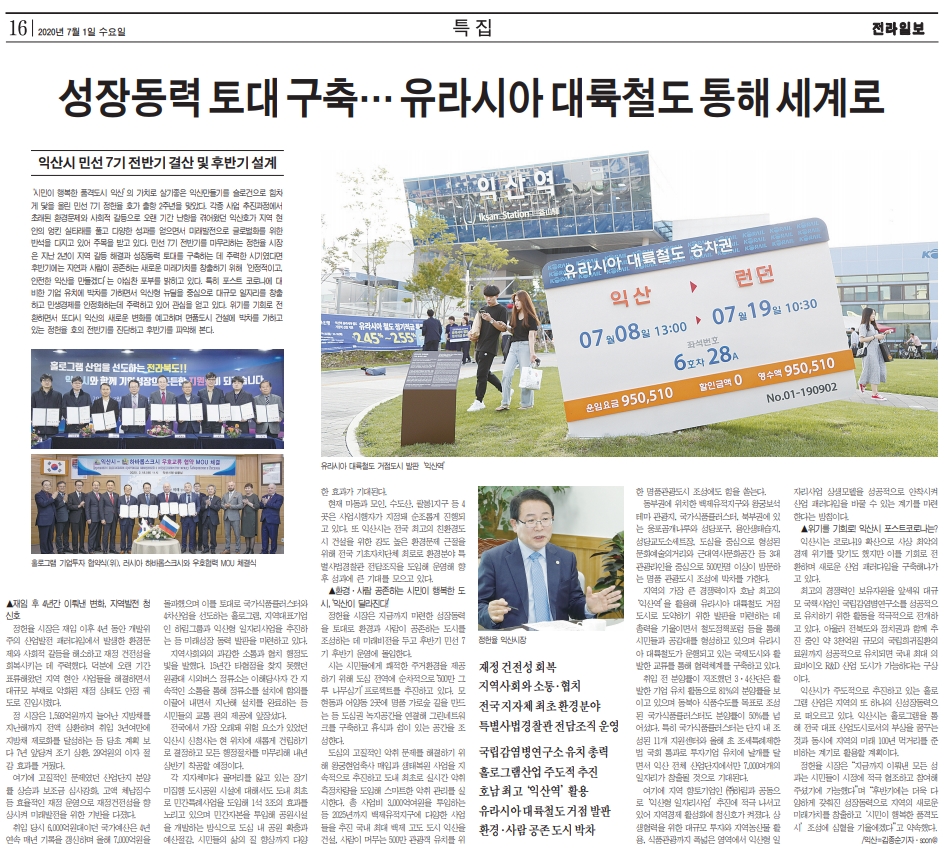 [전라일보] 성장동력 토대 구축… 유라시아 대륙철도 통해 세계로 (16면, 김종순)
