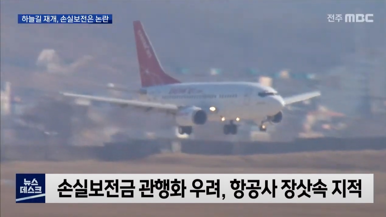 “과거 손실보전금을 받지 않았던 대한항공이 자회사인 진에어를 투입하면서 손실보전을 요구했다”, “전라북도는 지난해 30만 6천 명이 이용하면서 수익성이 확인됐다면서도 두 항공사와 협의에 나설 계획”이라며 손실보전금 지급이 “과거 이스타항공이 돈이 되는 김포 노선을 군산으로 돌리면 수익성이 떨어진다며 연간 4억 원을 요구하면서 시작됐다”라고 지적했습니다.