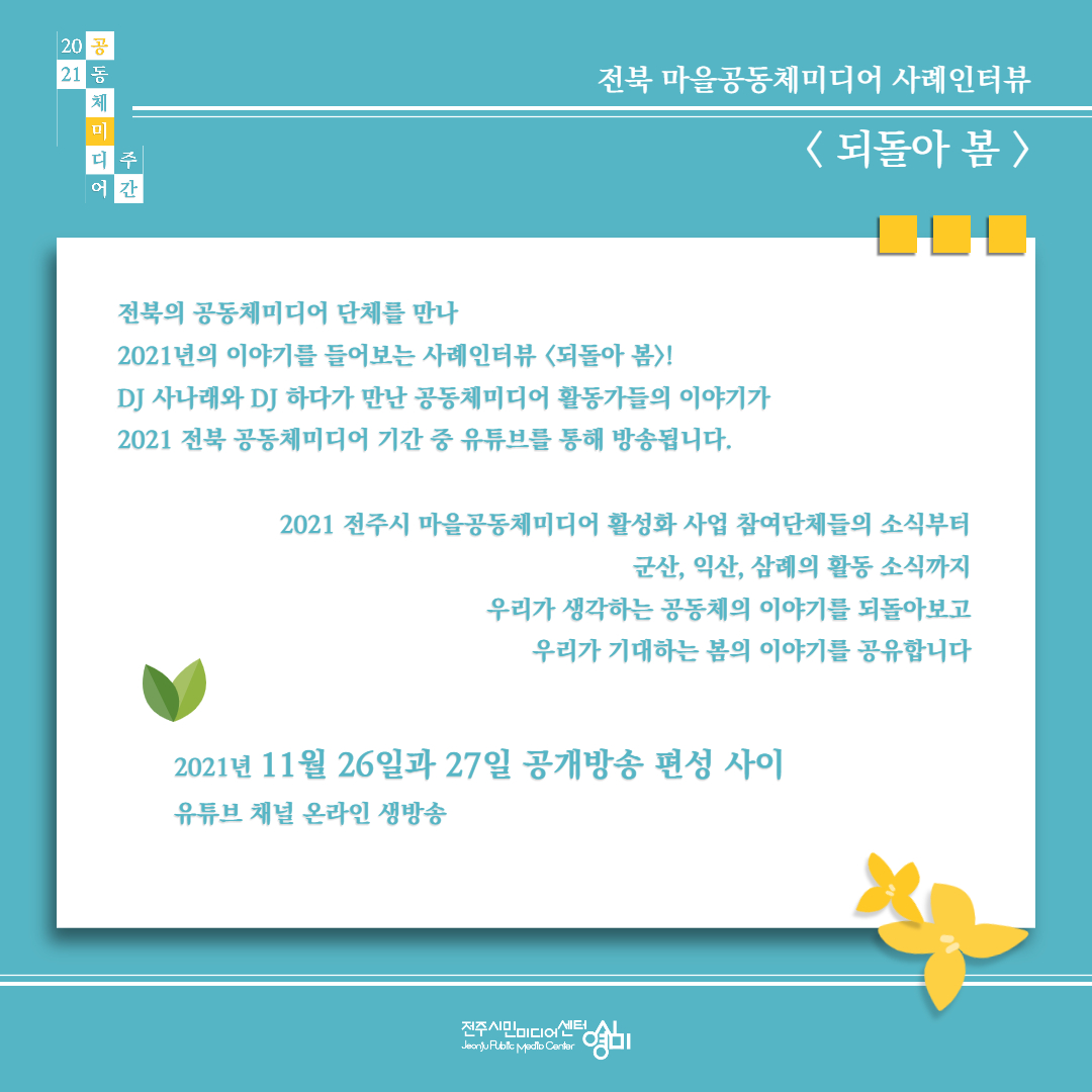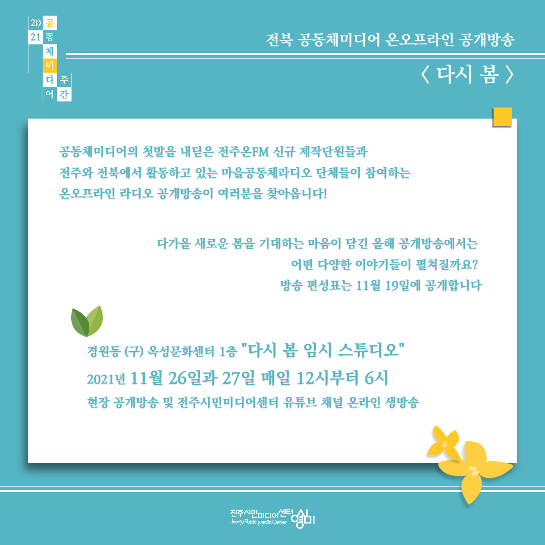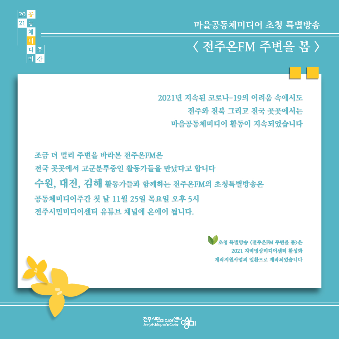 전주시민미디어센터영시미가 주최하는 전북공동체미디어주간 행사와 협업하여