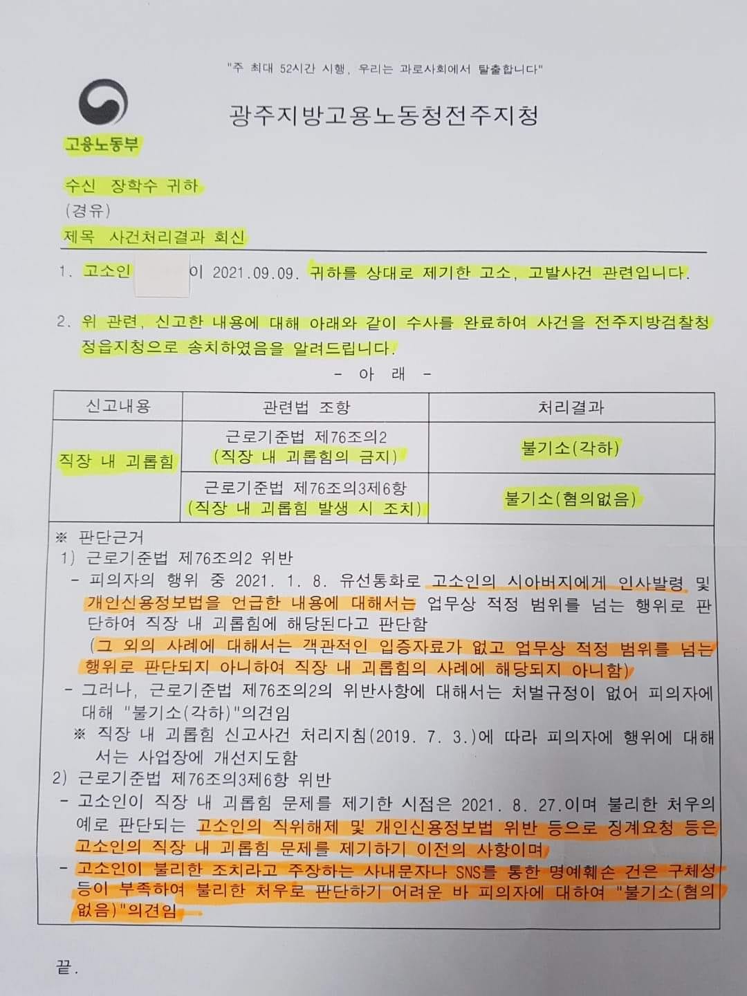 #갑질 의혹 관련 고소‧고발된 내용 무혐의,