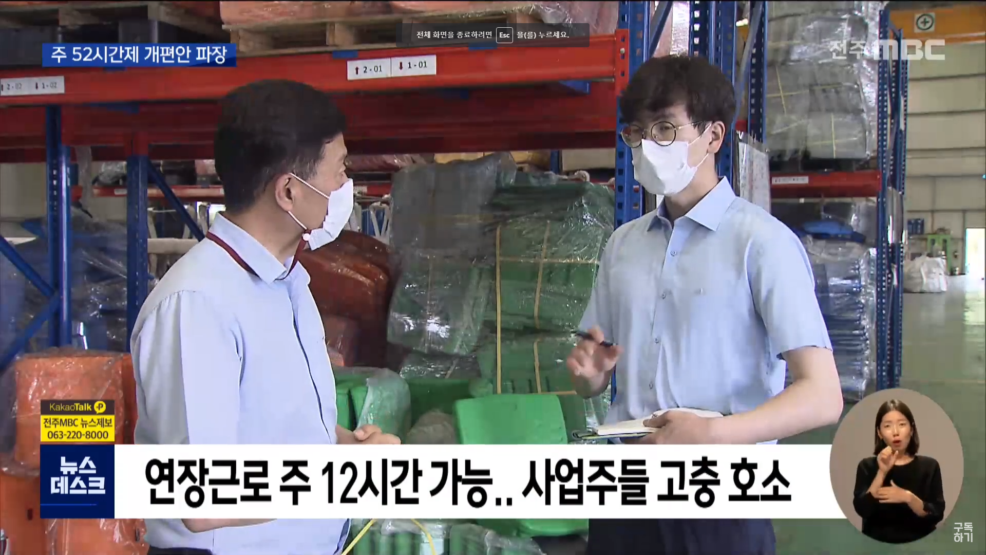 [전주MBC] 주 52시간제 개편되나..노사 찬·반 엇갈려(6/27, 한범수)