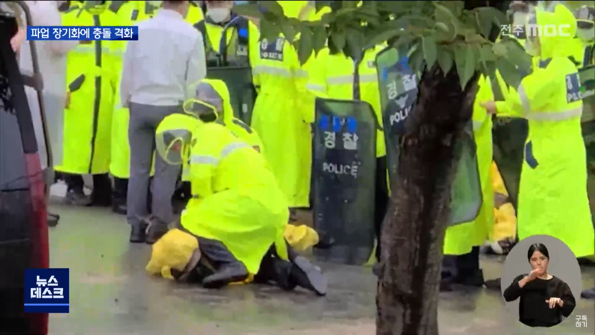 [전주MBC] 육계 차량 파업에 17명 연행.. "경찰, 과잉 진압"(7/18, 허현호)
