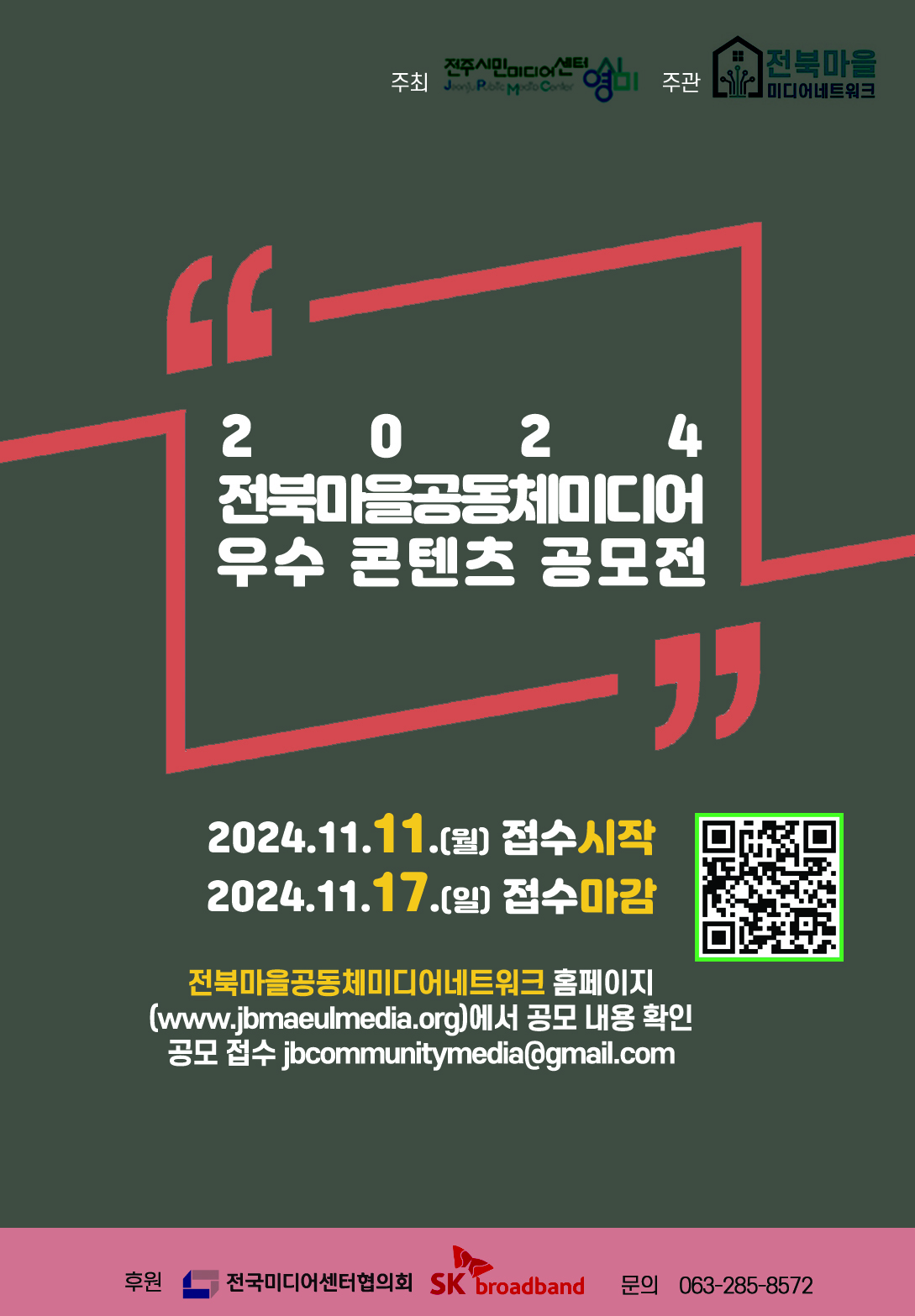[공모] 전북마을공동체미디어 우수 콘텐츠 공모전 심사 결과(2024) (0) | 2024.11.22 |