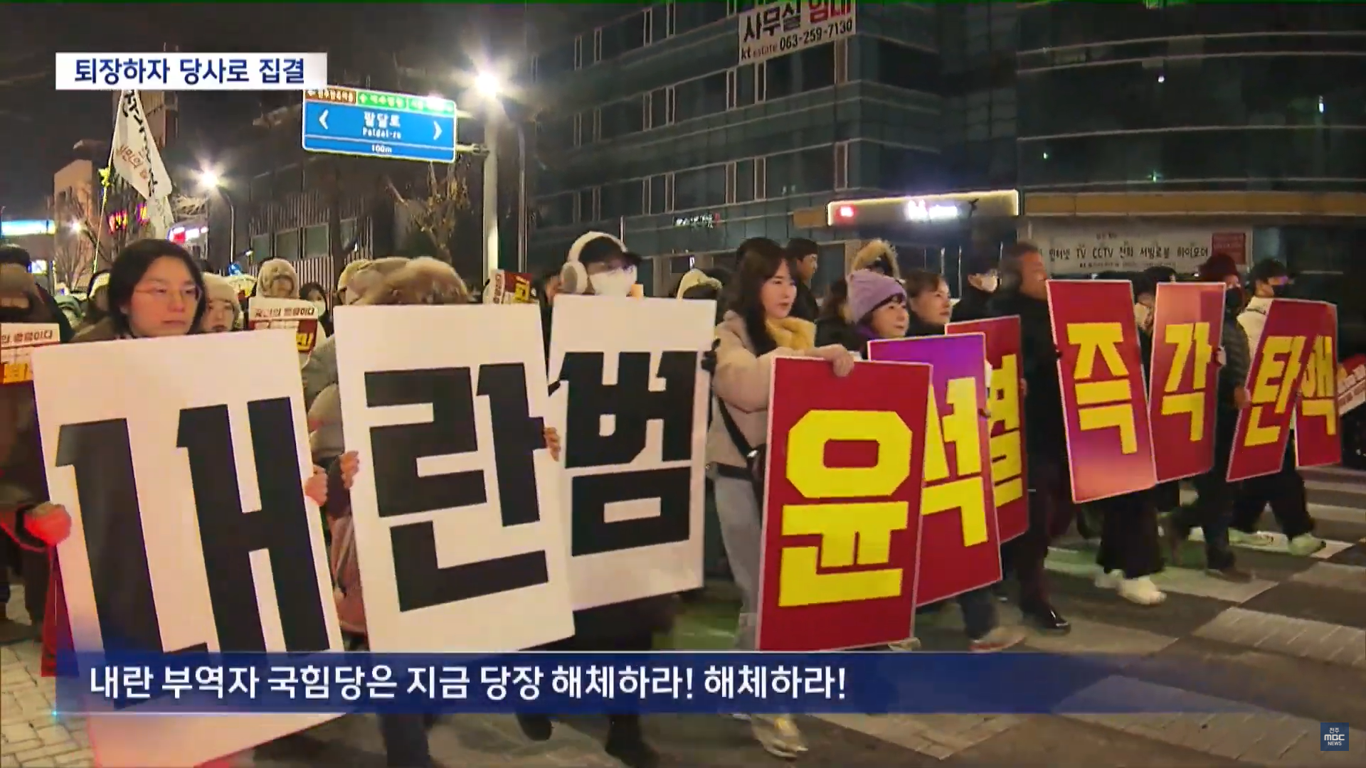 [전주MBC] 집단 퇴장에 분노.. 국힘 당사로 몰려간 촛불(12/8, 박혜진)