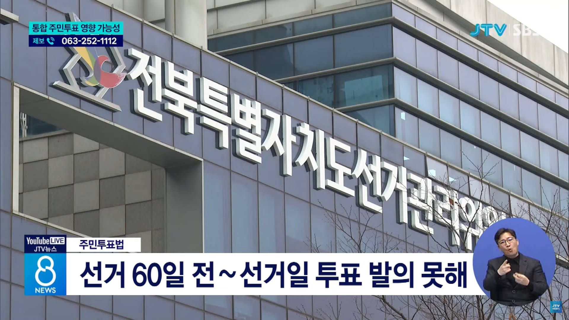 12월 17일 JTV전주방송은 “노무현 전 대통령 때처럼 헌법재판소가 두 달 만에 최종 판결을 할 경우 대선은 4월 중순에 하게 돼 주민투표에 별다른 영향이 없지만, 박근혜 전 대통령 때처럼 석 달가량 걸린다면 대선은 5월, 법정기간은 6개월을 모두 채운다면 8월에 대선을 치르게 돼 주민투표는 그 이후로 늦춰지게 된다.”라고 보도했습니다. 또 주민투표가 지나치게 늦어질 경우 법 제정과 행정절차 이행 어려움이 불가피하다고 덧붙였습니다.