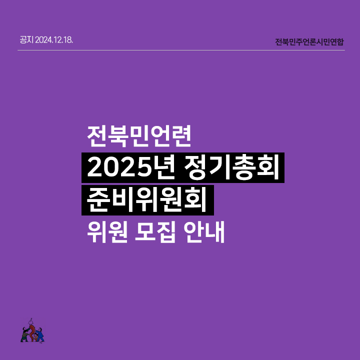 2025년 전북민언련 정기총회를 준비할 위원을 모집합니다.