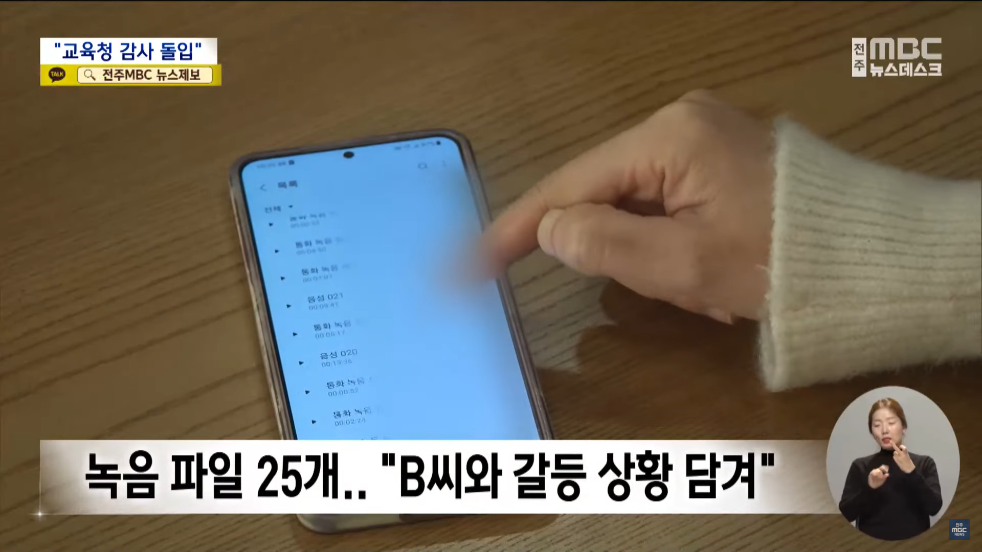 같은 날 JTV전주방송도 “유족들은 휴대전화 담긴 수십 개의 음성 녹음을 듣고 지난해 새로 온 행정실장에게 지속적인 폭언과 강압적인 업무 지시를 받아 왔다는 것을 알게 됐다.”, “유족들은 계속된 폭언이 벼랑 끝으로 내몰았다고 말한다.”라고 보도했습니다.
