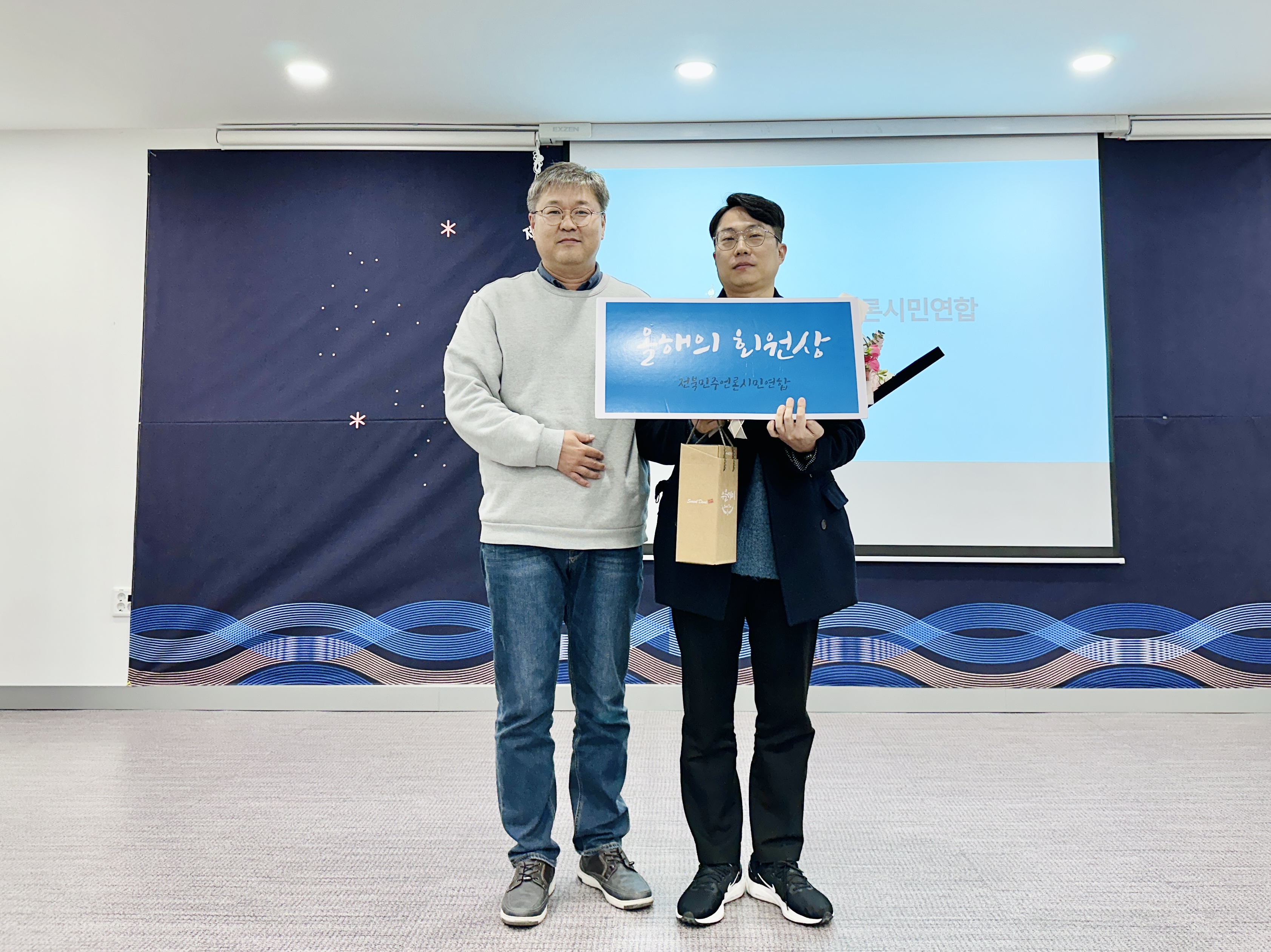 2024년 가장 많이 전북민언련 후원자를 연결해 전북민언련 재정 자립을 위해 애써주신 허옥희 회원님과 전북민언련 텃밭 모임 활동과 회원 모임에 열정적으로 참여하신 김태훈 회원님이 받으셨습니다. 모두 감사드립니다.