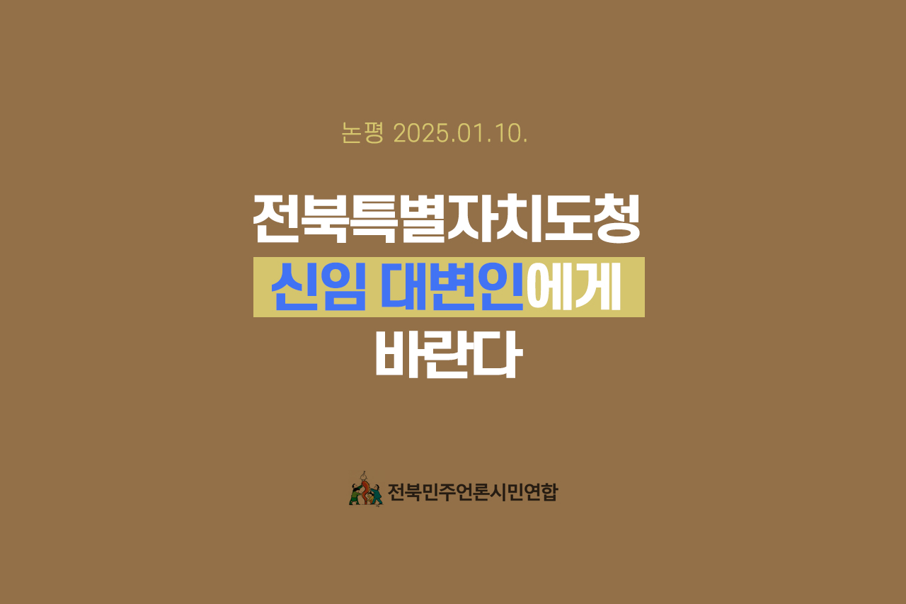 4. 새로 임명된 김철태 대변인에게 요구한다. 공적 자금인 홍보 예산이 우호적 언론 관계 형성을 위한 자치단체장의 쌈짓돈으로 전락했다는 지역사회의 비판은 여전히 유효하며 감사위원회 지적사항을 이행하기 위해서라도 대변인실은 홍보비 집행 기준을 마련해야 하는 과제를 안고 있는 상황이다. 때문에 새로운 신임 대변인이 어떻게 과제를 풀어나갈지 지역 시민사회는 많은 관심을 갖고 있으며, 제도 개선을 통해 전북자치도청의 홍보비 집행 기준의 투명성을 높일 수 있는 2025년이 되기를 기대하는 바이다.