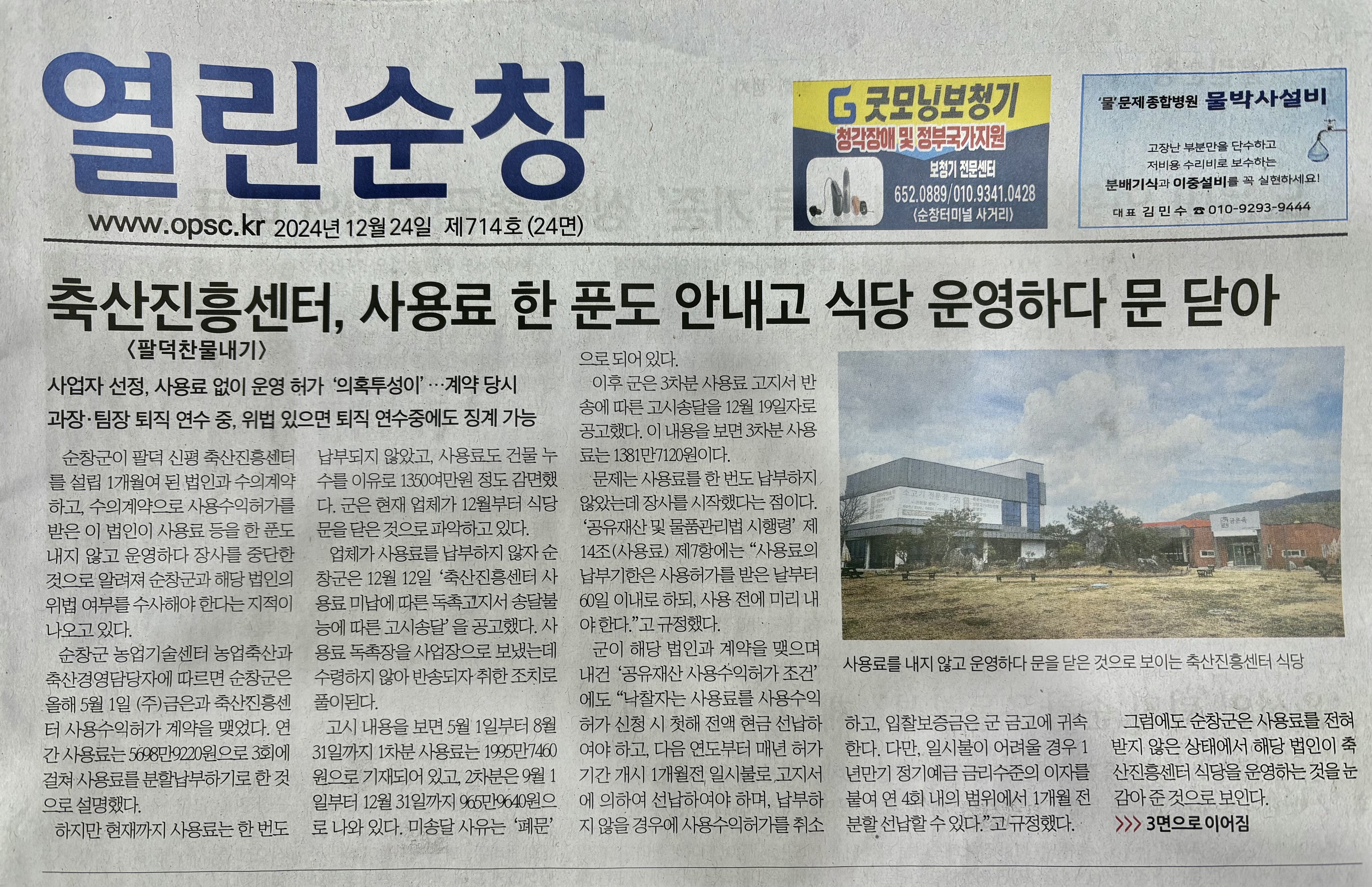 [열린순창] 축산진흥센터(팔덕 찬물내기), 사용료 한 푼도 안내고 식당 운영하다 문 닫아(2024/12/25, 조재웅)