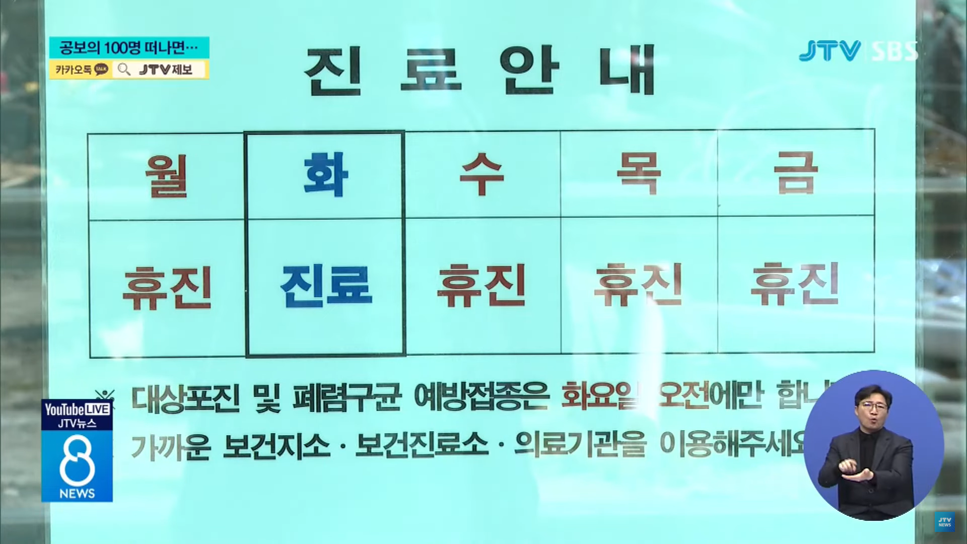 2월 18일 JTV전주방송은 전북 지역 공보의들이 대거 전역을 앞두고 있다며 “가뜩이나 취약한 농어촌 의료 시스템이 무너지는 게 아니냐는 위기감이 커지고 있다.”라고 보도했습니다. 올해 4월 전북에서 100명이 복무를 마칠 예정인데, 도내 전체 공보의 287명 중 35%에 해당하는 인원입니다.