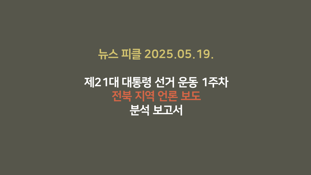 지역 언론들도 제21대 대통령 선거와 관련된 보도를 이어가는 가운데, 후보 등록 후 공식 선거 운동이 시작된 5월 12일(월)부터 5월 18일(일)까지 1주차 지역 언론들의 대선 관련 보도는 어땠는지 양적 분석을 통해 정리해 봤습니다.
