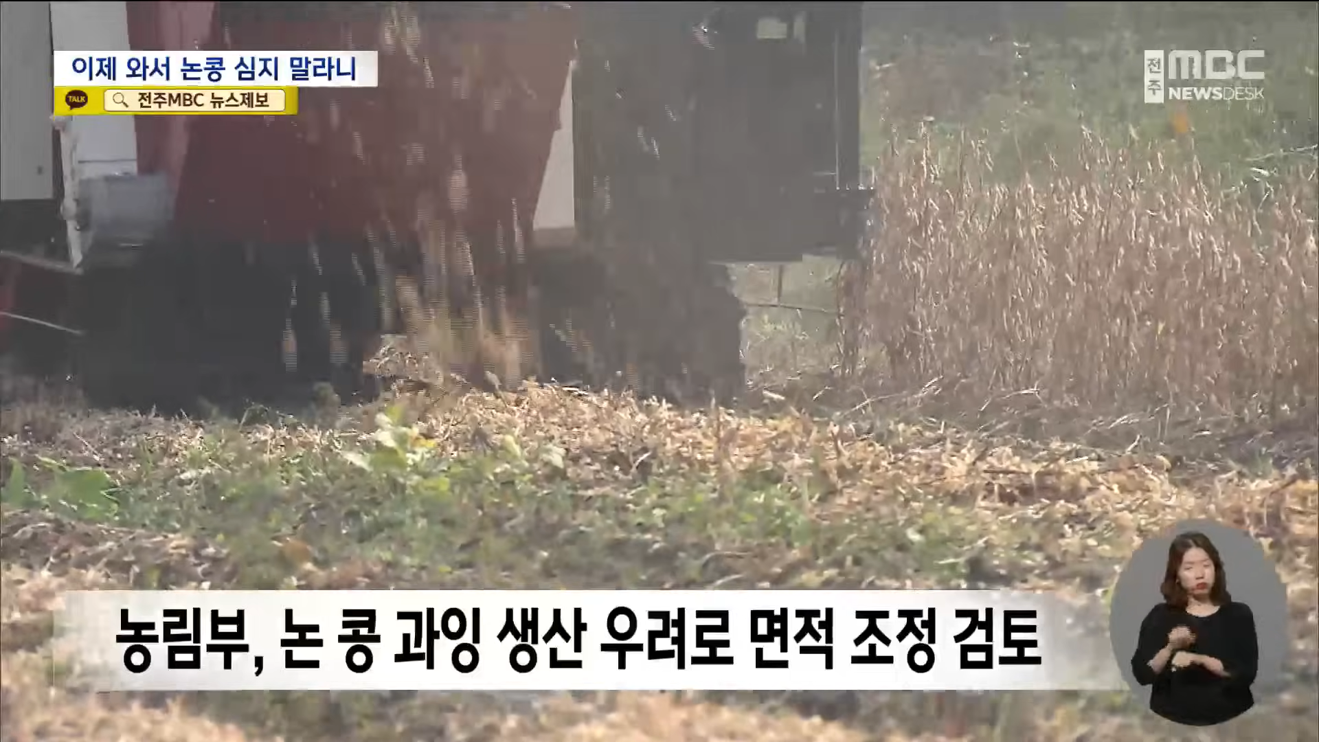 전농 전북도연맹 측은 “그동안 투자 비용이 다시 회수가 되지 못한다는 거죠. 기계 비용, 인적인 비용까지 해서 싹 다 무효화되는 것이기 때문에...”라며 정부 정책을 따랐더니 오히려 손해를 보는 상황이라고 주장했는데요. 8월 19일 전주MBC도 “벼농사에서 논 콩 농사로 전환하기 위해 빚을 내 농기계를 구입한 농가들은 정부 정책이 손바닥 뒤집듯 바뀌고 있다며 반발하고 있다.”라고 보도했습니다. 벼농사용 콤바인과 이앙기를 팔고, 2억 5천만 원을 들여 콩 농사에 적합한 파종기와 콤바인, 트랙터를 새로 마련했지만 정부 정책 변화로 당혹감을 나타내는 한 농민의 상황을 전달하기도 했습니다.