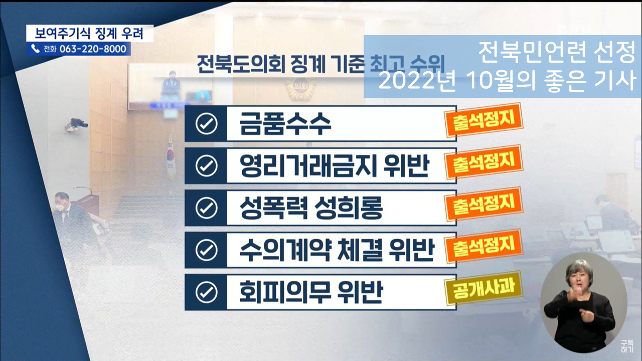 뇌물, 성범죄, 음주운전도 제명 안 된다. 지방의회 자체 징계 기준 문제점 드러낸 전주MBC 보도