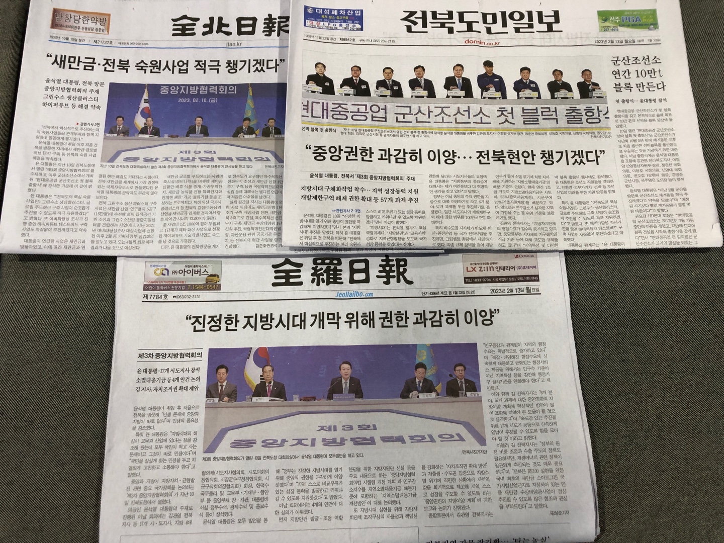 지난 10일 윤석열 대통령이 전라북도를 방문했습니다. 전북도청에서 열린 ‘제3회 중앙지방협력회의’를 진행하고, 이후에는 군산조선소로 이동해서 ‘현대중공업 군산조선소 첫 블록 출항식’에 참석했는데요. 지역 언론들이 관련 내용을 주요하게 보도했는데, 윤석열 대통령의 발언에 의미를 부여하면서도 일부 아쉬움을 드러내기도 했습니다.