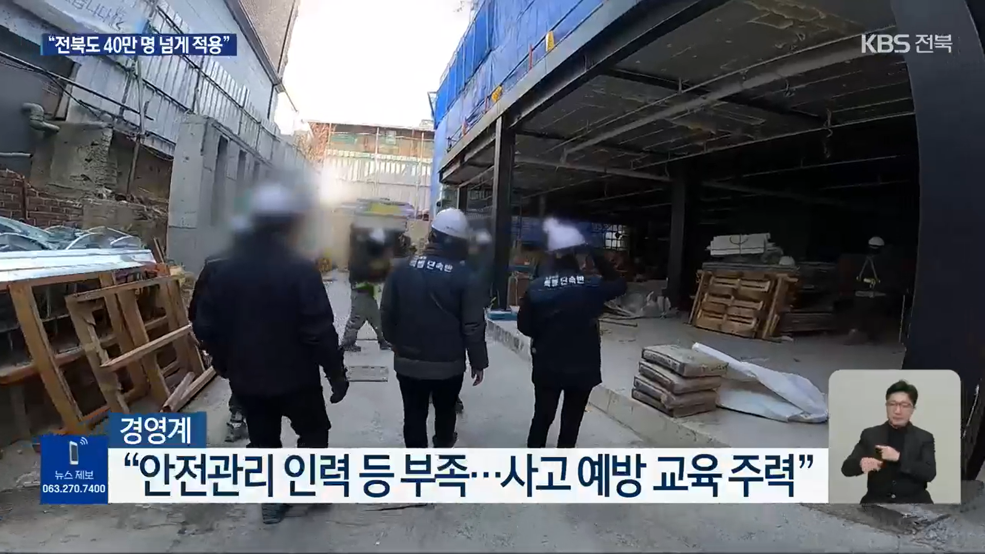 [전주MBC] 전북자치도 ‘중대재해법’ 확대... 적용 사업장 2만 4천 곳 증가(1/26)