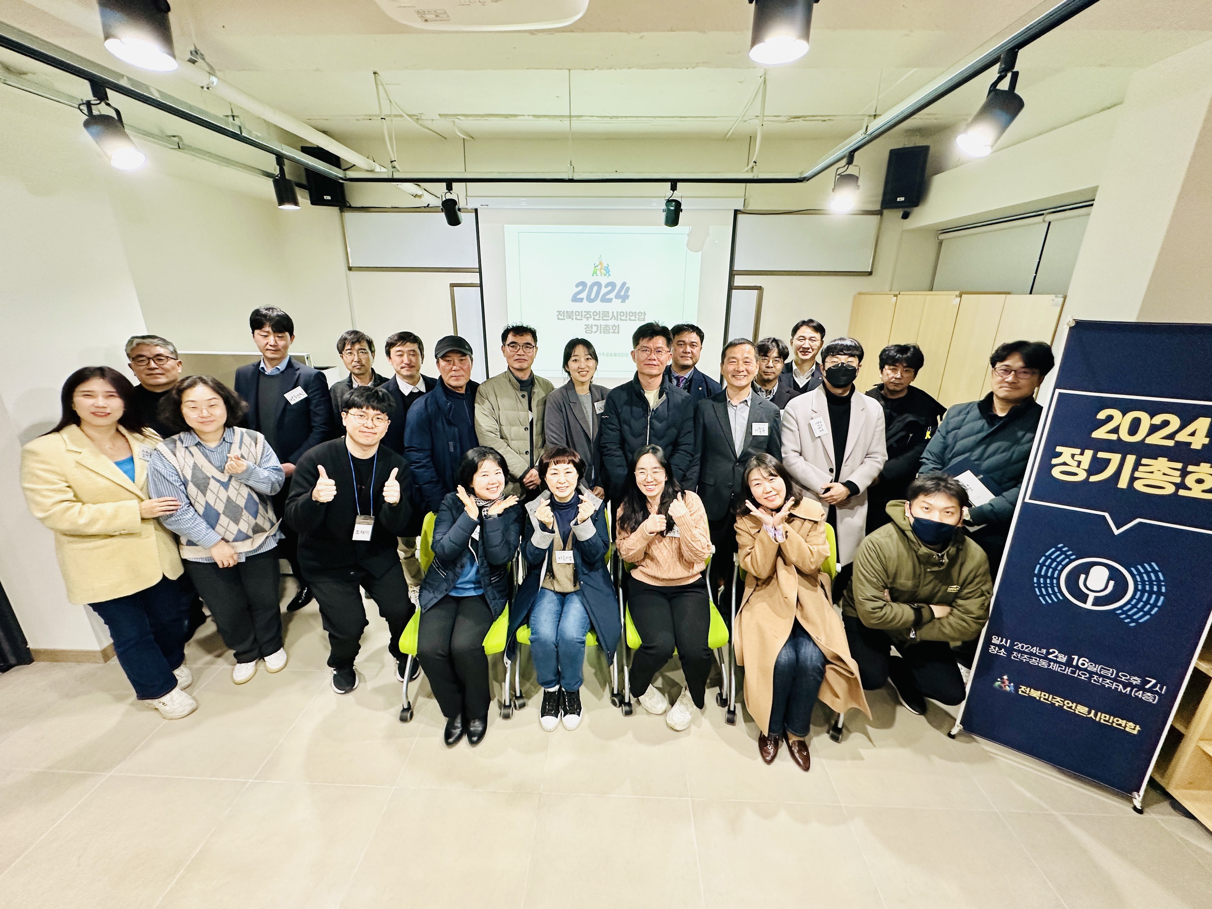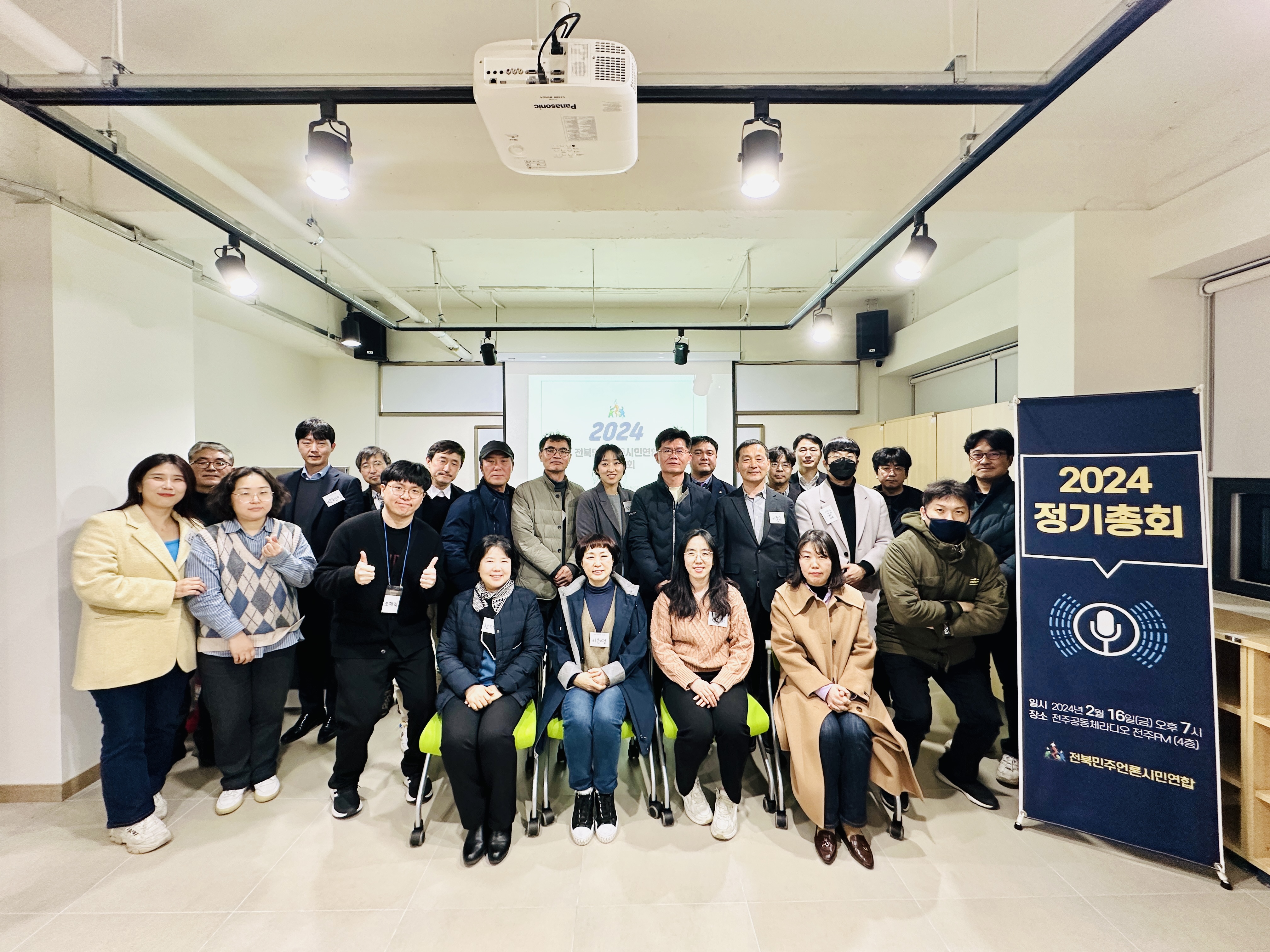 2024년 정기총회가 마무리 되었어요! 올해는 2월 14일 개국한 전주공동체라디오 전주FM 방송사에서 정기총회를 진행했습니다. 2000년대 중반부터 전북민언련에서 시민들의 커뮤니케이션 권리를 확장하기 위한 방안 중의 하나로 소출력 공동체라디오 운동을 진행해 왔었는데요, 올해 전주FM이 개국하면서 많은 분들의 축하를 받기도 했습니다. 총회에 참여하시는 회원들에게 전주FM 스튜디오도 보여드리고, 회의도 진행할 수 있었던 뜻깊은 시간이었습니다.