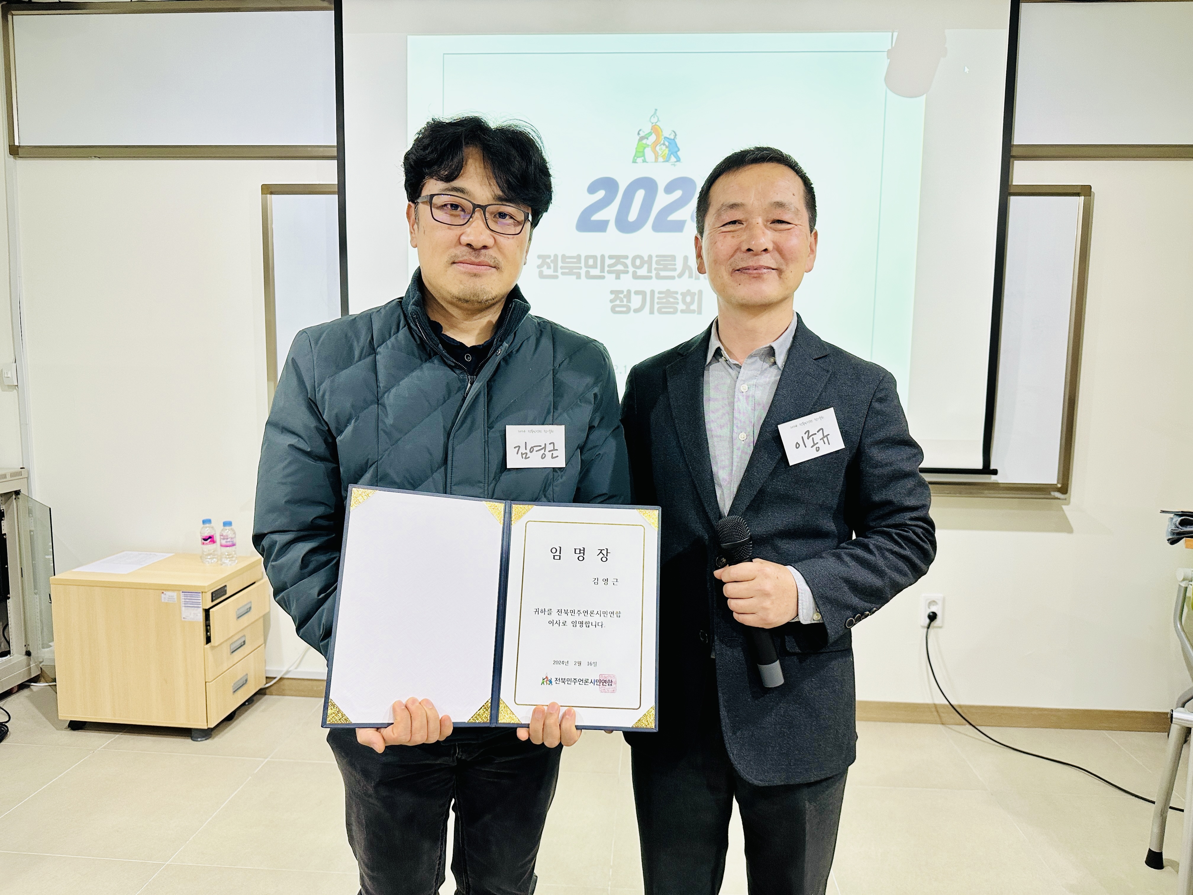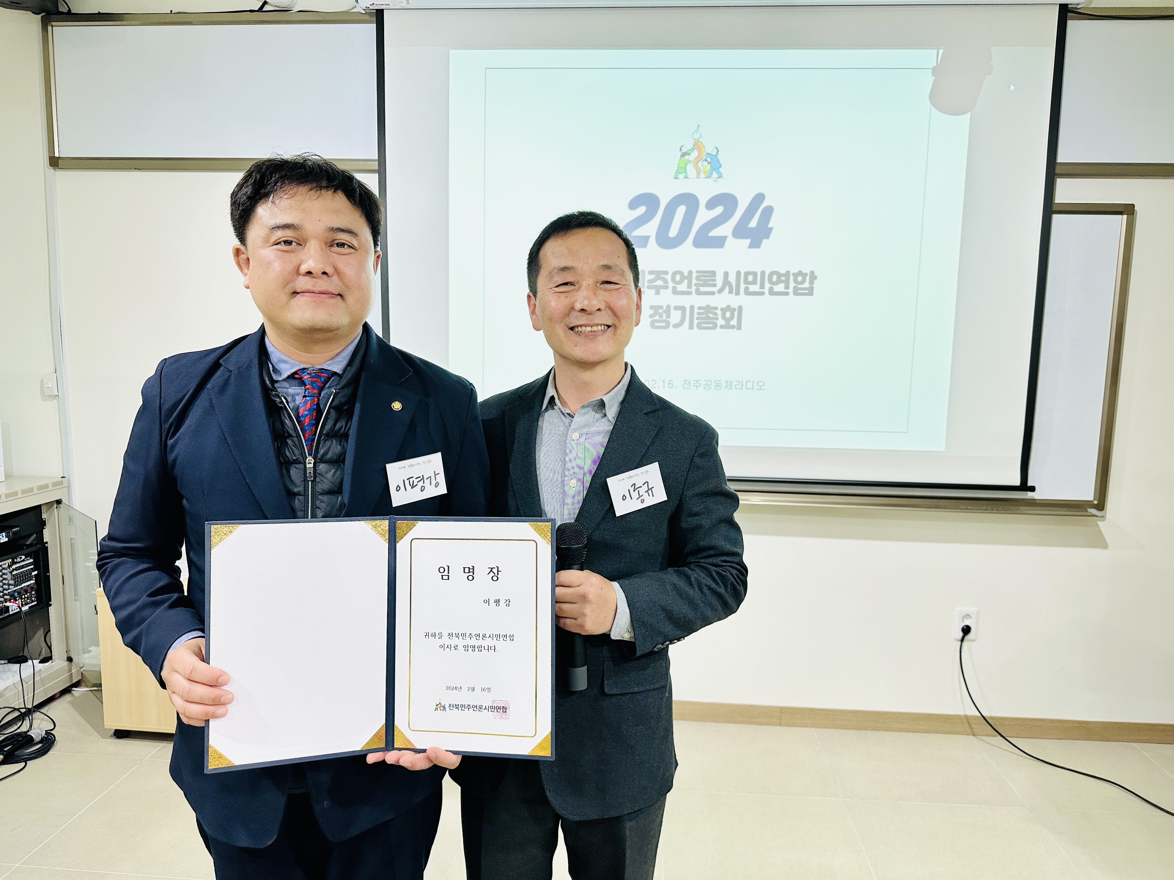 이상훈, 이종규 공동대표는 연임되었고, 박민 전 전북민언련 정책위원장이 공동대표로 신규 선출되었습니다. 또한 정우주, 이평강 이사로 새로 선임되었고, 여민영, 최태호 감사가 새로 선출되었습니다.