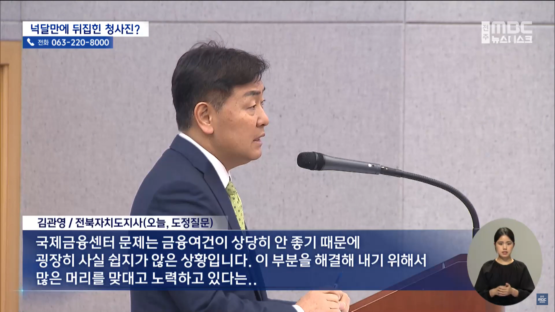 전주MBC는 “전북금융센터 조성 사업에 대한 의구심은 사실 새롭지 않다. 청사진이 처음 나온 게 이미 6년 전으로 전북신용보증재단의 예산을 투입할 계획이었지만 여의치 않아 민간자본의 힘을 빌리는 쪽으로 시선을 돌렸다. 그러나 사업규모를 세 배 넘게 늘리면서 자금조달에 필수조건인 사업성을 장담하지 못하게 된 것”이라고 지적했습니다. 민간 사업자가 자금 조달에 실패해 무산된 중고차 수출단지 조성사업과 비슷한 상황이라는 겁니다.