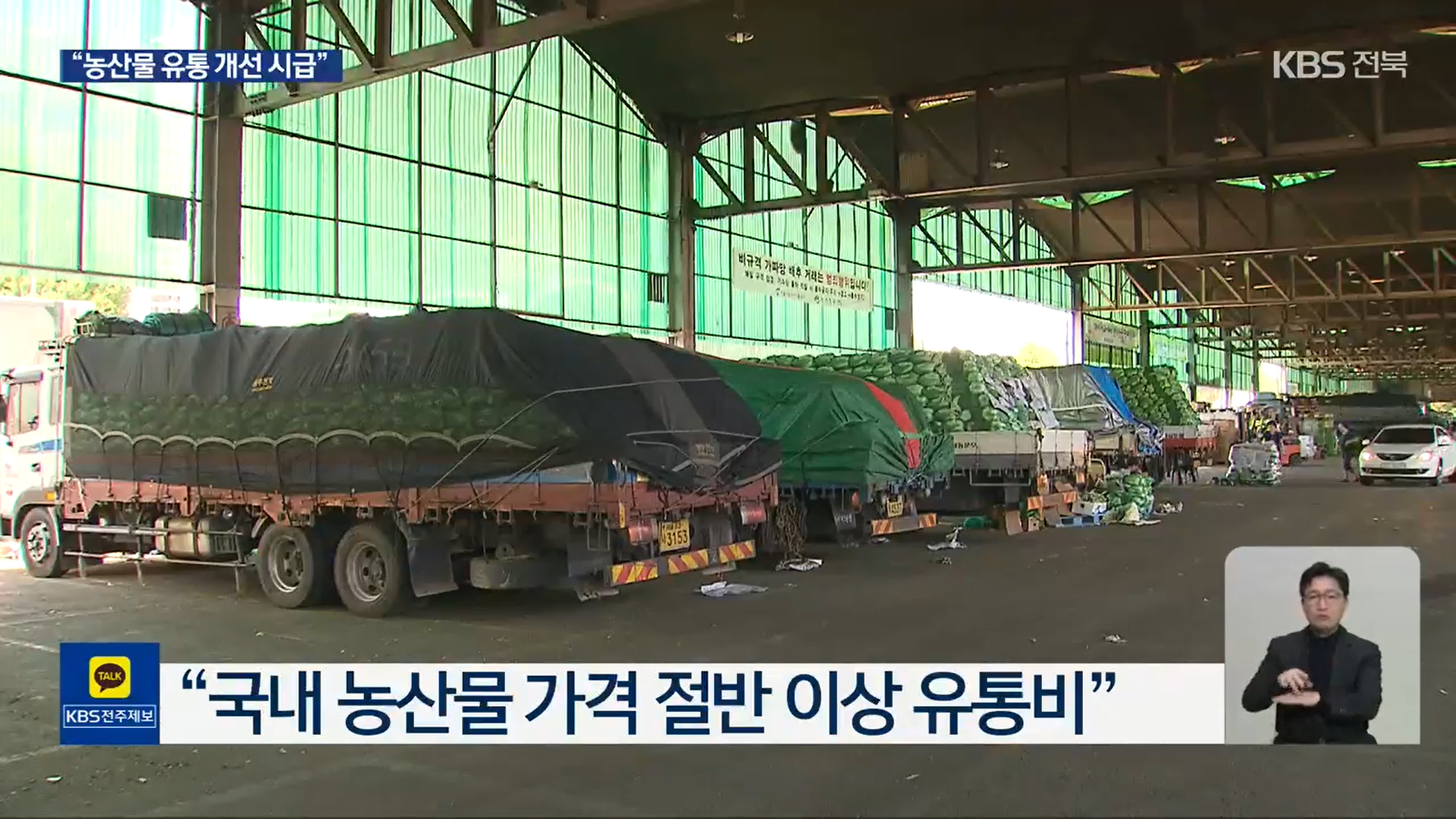 일반적으로 농민 - 산지 유통인, 농협 - 도매시장, 도매 법인 - 중도매인 - 소매상 등 여러 단계를 거치기 때문에 결국 최종적으로 소비자가 모든 단계의 비용을 부담하게 된다는 건데요. 특히 도매시장은 소수의 유통 주체 간 거래만 가능해 경쟁이 제한되고 물류 비효율도 발생하는 문제가 있다며 유통 구조 개선이 시급하다고 지적했습니다.